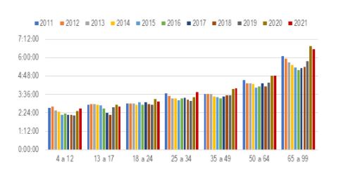 Consumo efectivo de TV abierta por edad 2011-2021