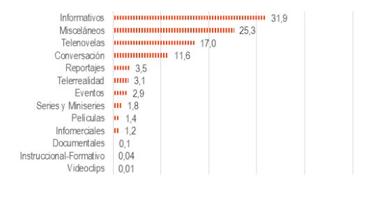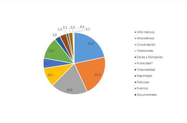 Los programas misceláneos, incluidos los matinales, tuvieron la segunda mayor presencia en pantalla, con un 21,5%.
