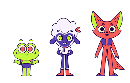 La marca es complementada por una familia de mascotas compuesta por tres personajes.Uno de ellos es la rana, que representa al rango etario preescolar. También la integra la oveja, el rango que va de los 7 a 12 años y el zorro, vinculado al rango de mayores 13 años y más.