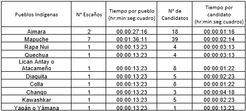 Tiempo Candidaturas Escaños Reservados Pueblos Indígenas. Total: 3 minutos y 54 segundos