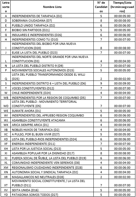Tiempo Listas y Partidos Políticos. Total: 26 minutos y 6 segundos