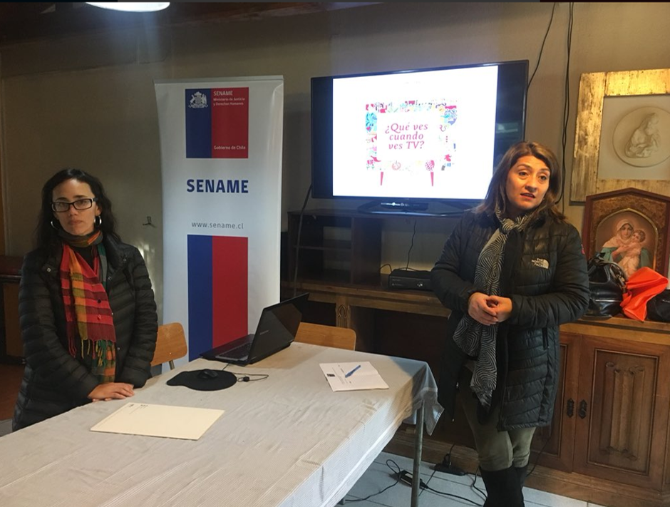 Con un didáctico taller, la directora regional Ilona Bouillet, explicó el impacto del consumo de la televisión en niños y niñas a los profesionales de la residencia de protección de Rancagua, Catalina Kentenich de Rancagua.