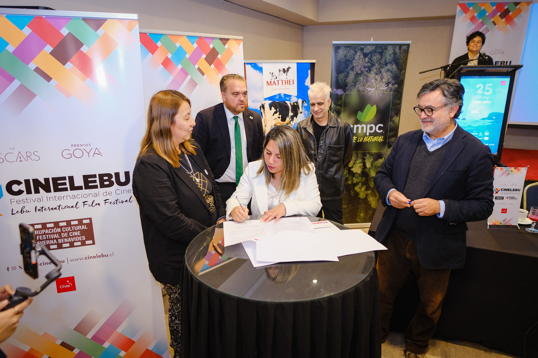 Además, Mauricio Muñoz resaltó la importancia del Festival Internacional de Cine de Lebu como una plataforma clave para la difusión del audiovisual chileno, otorgando visibilidad a producciones nacionales en instancias internacionales como los premios Goya y los Oscar. En este contexto, señaló que el convenio firmado con el CNTV busca consolidar una alianza estratégica que no solo fortalezca la presencia del cine chileno en el extranjero, sino que también acerque estos contenidos a la comunidad local.