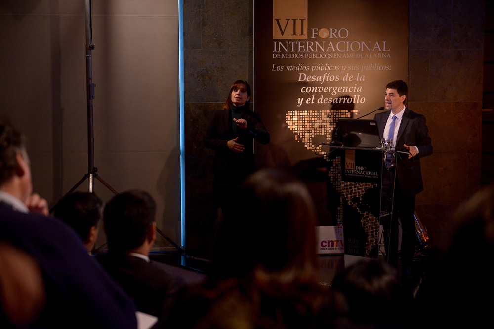 Permítanme un saludo especial a los visitantes internacionales, que han venido hasta Chile a compartir sus valiosas miradas y su experiencia acumulada en materia de medios públicos y, en particular de televisión pública.