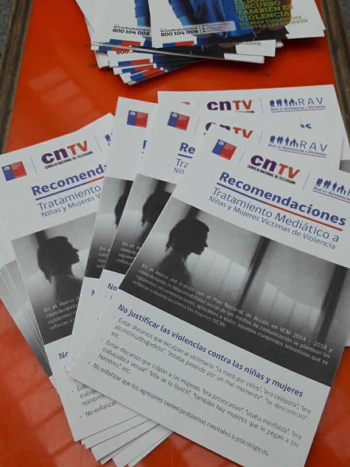 Un 50 por ciento de las denuncias ciudadanas por violencia de género recibidas por el Consejo Nacional de Televisión el 2016 corresponden a violencia de pareja y violencia intrafamiliar. En el marco del Día Internacional de la Eliminación de la Violencia contra las Mujeres, se dio a conocer esta mañana la primera cartilla con «Recomendaciones para el tratamiento mediático a niñas y mujeres víctimas de violencia» realizada por el Ministerio de la Mujer y la Equidad de Género, el Consejo Nacional de Televisión y por la Red de Asistencia a Víctimas del Ministerio del Interior.