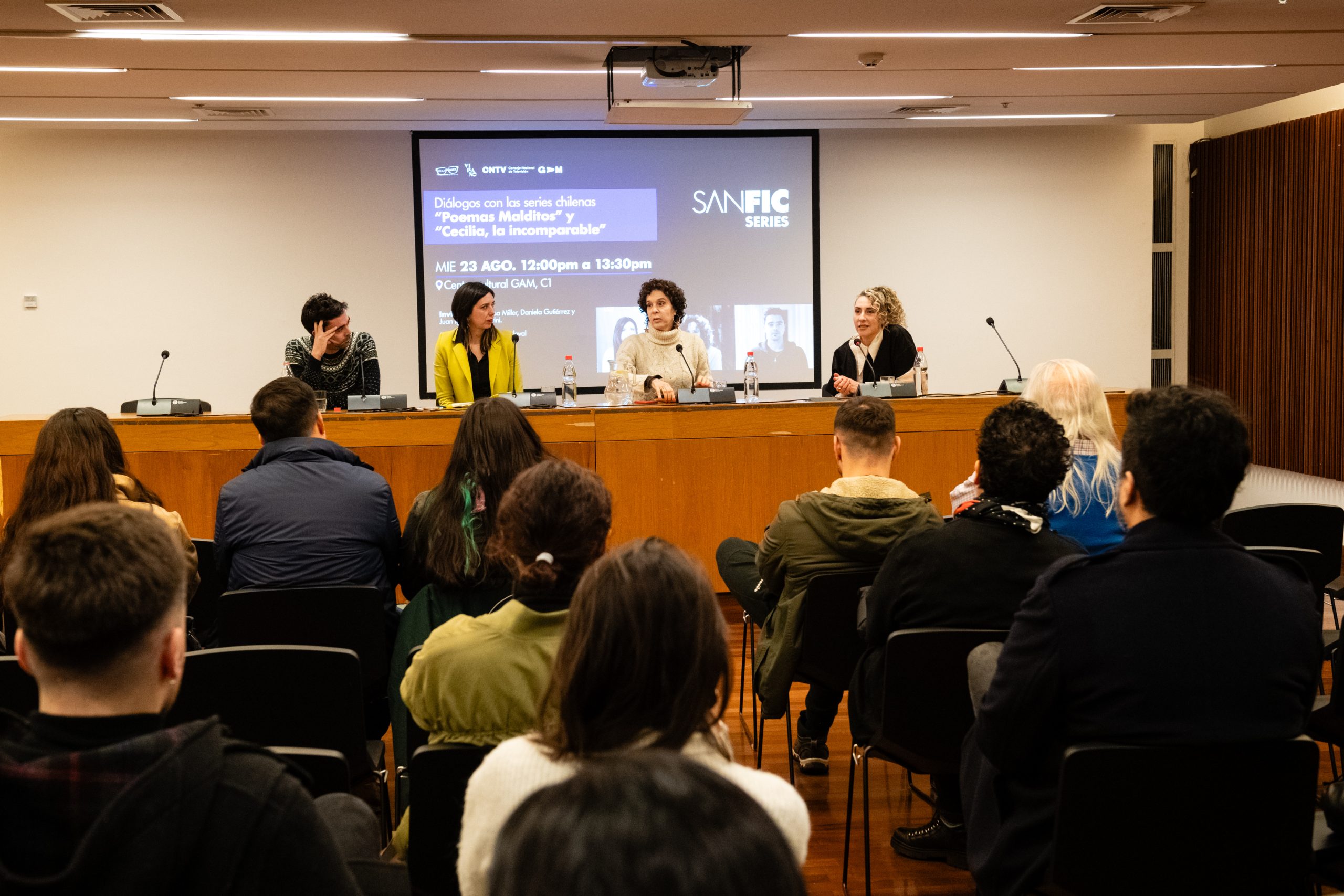 - Adicionalmente, la directora del Departamento de Fomento, Daniela Gutiérrez, participó en el conversatorio “Diálogo con las series chilenas ‘Poemas Malditos’ y ‘Cecilia, La Incomparable”, organizado junto a Sanfic Industrias con el objetivo generar un espacio de encuentro y de reflexión sobre el proceso de realización de series nacionales.