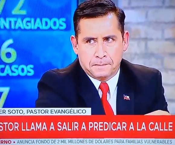 En el programa emitido el pasado 9 de abril, el líder evangélico llamó a continuar predicando en las calles pese a las restricciones por la emergencia sanitaria por el covid-19. «La palabra dice claramente que debemos ir por todo el mundo y predicar el evangelio a toda criaturas. Segundo, dice ‘sobre los enfermos impondremos las manos y estos sanarán’. Esto es un tema de fe, nosotros no nos escondemos como verdaderas ratas cobardes», manifestó. Tras ser cuestionado por sus dichos e ir contra las recomendaciones, sostuvo que «el único que hoy día puede hacer un milagro en Chile se llama Jesucristo». Ante estas palabras, los animadores decidieron cortar su discurso e ir a pausa comercial, aun así los televidentes no pasaron por alto la situación y denunciaron ante el CNTV. El ente regulador, en tanto, decidió formular cargos en contra de Mega por una supuesta infracción a la ley por emitir «locuciones proferidas por un líder religioso que llama a desobedecer las recomendaciones sanitarias de la autoridad, lo que pudo comprometer la salud de la población». Este hecho es hasta ahora el más denunciado en lo que va del 2020.