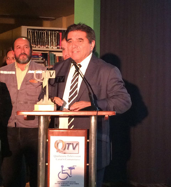 Quilicura TV, el canal comunitario ganador del Fondo de Producción Comunitaria 2015 con el proyecto «Identidad»; entregó el Premio a la Libertad de Expresión 2016 al Presidente del CNTV Oscar Reyes.