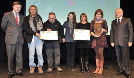 Raimundo Monge, director de Quéveo y Herman Chadwick, presidente del CNTV, hacen entrega del tercer lugar como Mejor Programa Familiar a Ricardo Astorga y su equipo de «La Ruta de Chile».
